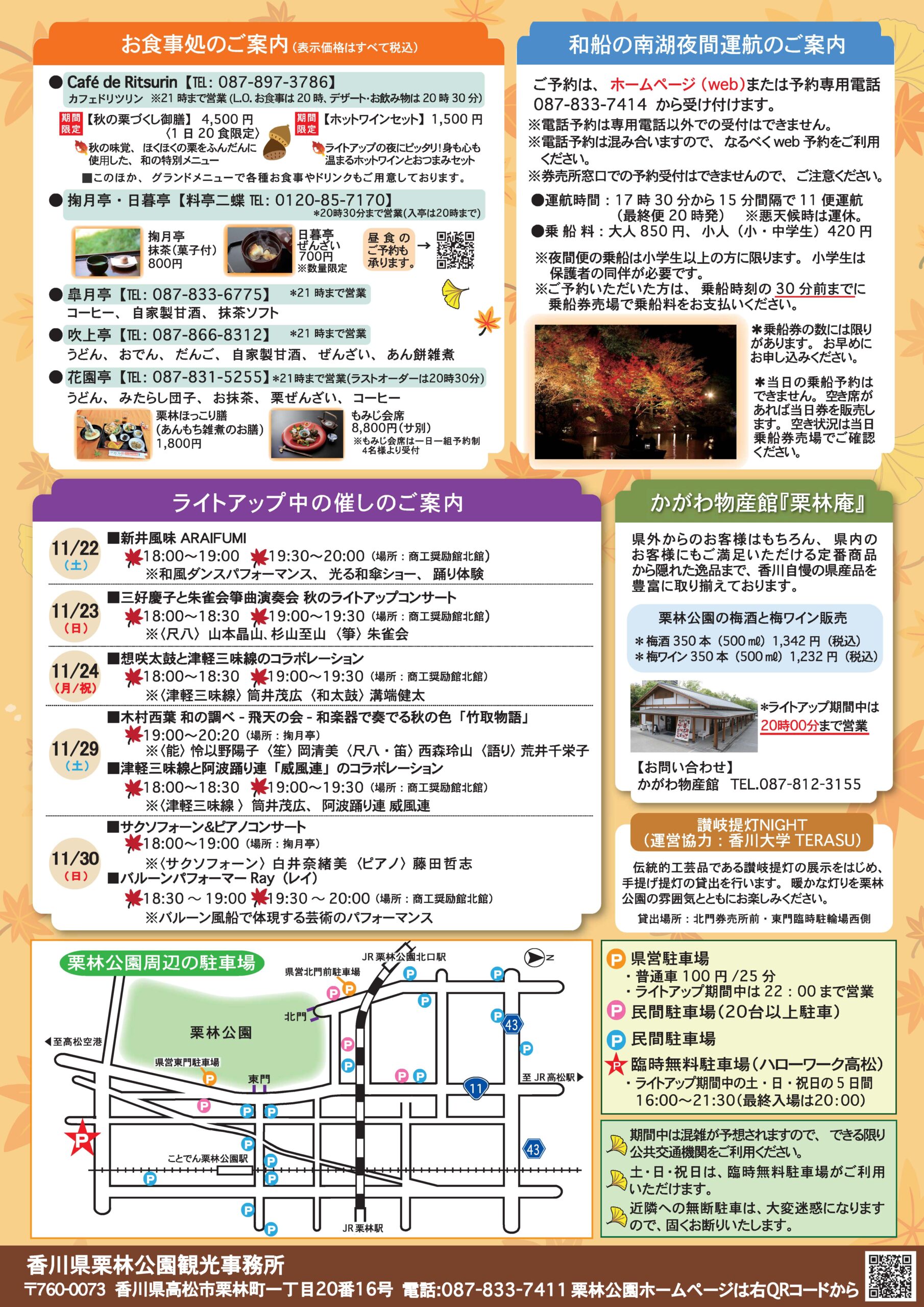 特別名勝栗林公園秋のライトアップ2025チラシ
